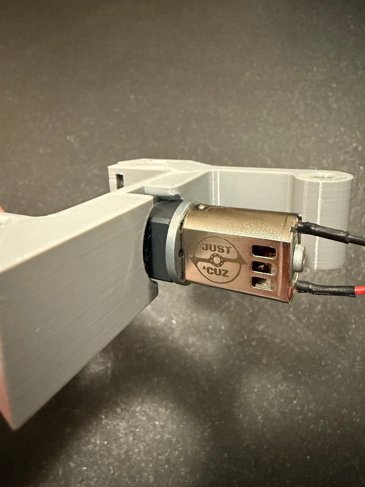 Reworked motor mount to accept Just ‘Cuz motors. The motors from the original design are no longer available and Just ‘Cuz are of high quality.
