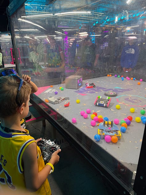 We’ve been a spectator many times at NHRL, but this was our first time in in the pits. It’s intense! But also friendly and community-driven. People were patient with us. We spent some time walking around checking out other bots, and asking questions.